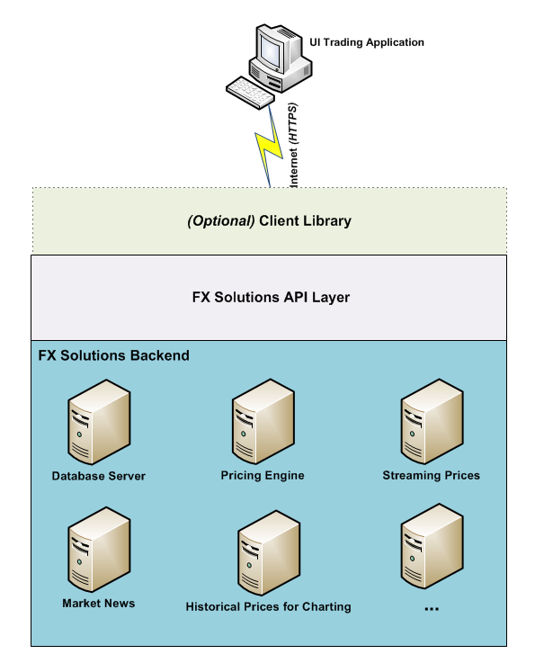 The FX Solutions Application Programming Interface (FXSAPI) enables you to connect with the FX Solutions trading backend using your client side user interface (UI) trading application. By offering the FXSAPI, users can create their own trading solution in order to trade their FX Solutions account.
