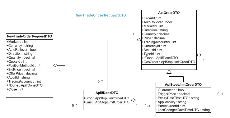 The NewTradeOrderRequestDTO is used to place a new trade on a market. The following is the UML class diagram for this process.