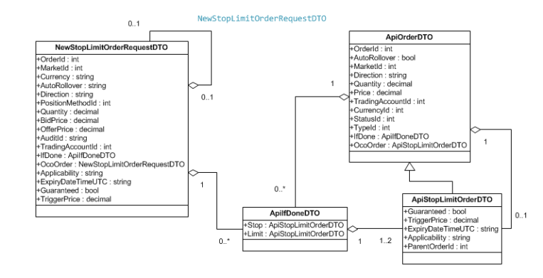 The NewStopLimitOrderRequestDTO is used to request new stop or limit orders. The following is the UML class diagram for this process.