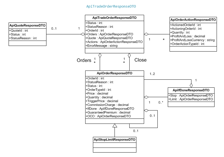 The ApiTradeOrderResponseDTO is the response to trade order related requests. The following is the UML class diagram for this process.